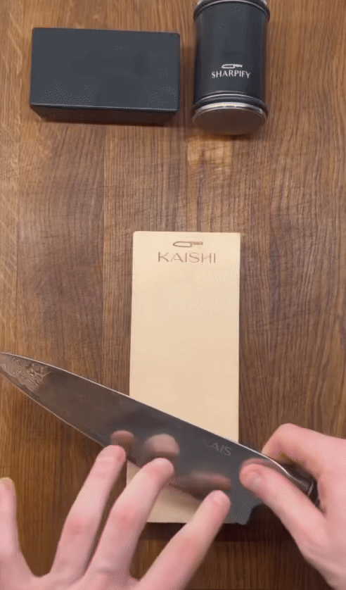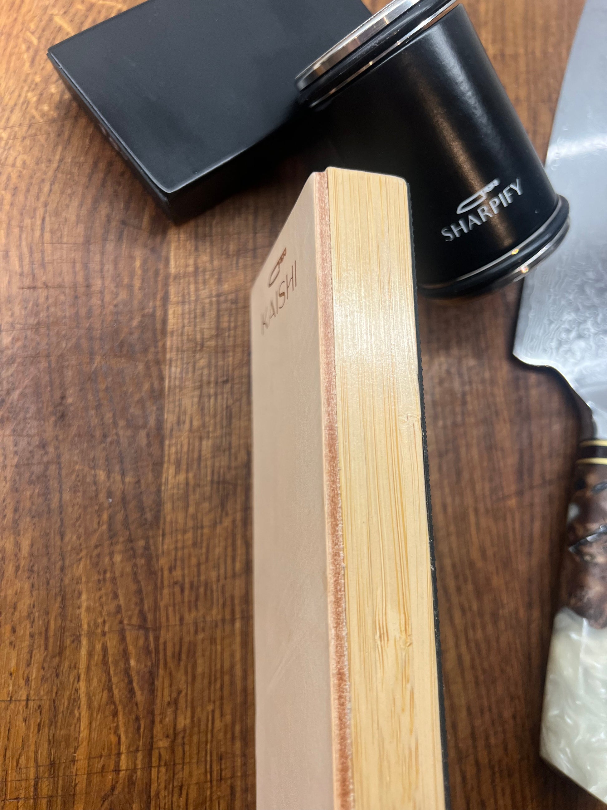 Kombinationen Sharpy og Læderstrop: Med Sharpy får du hurtigt og effektivt slebet din kniv, og med læderstroppen fuldender du processen for at opnå professionel præcision i hvert snit.